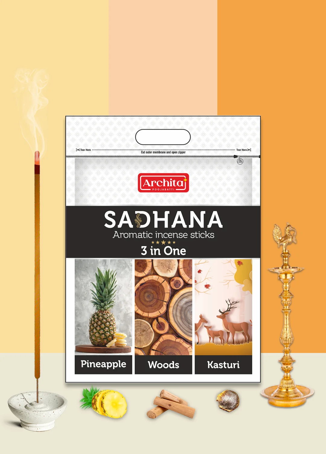 Archita Incense Sticks Sadhna 3 in 1 – Pineapple Woods Kasturi -(pack of 3)